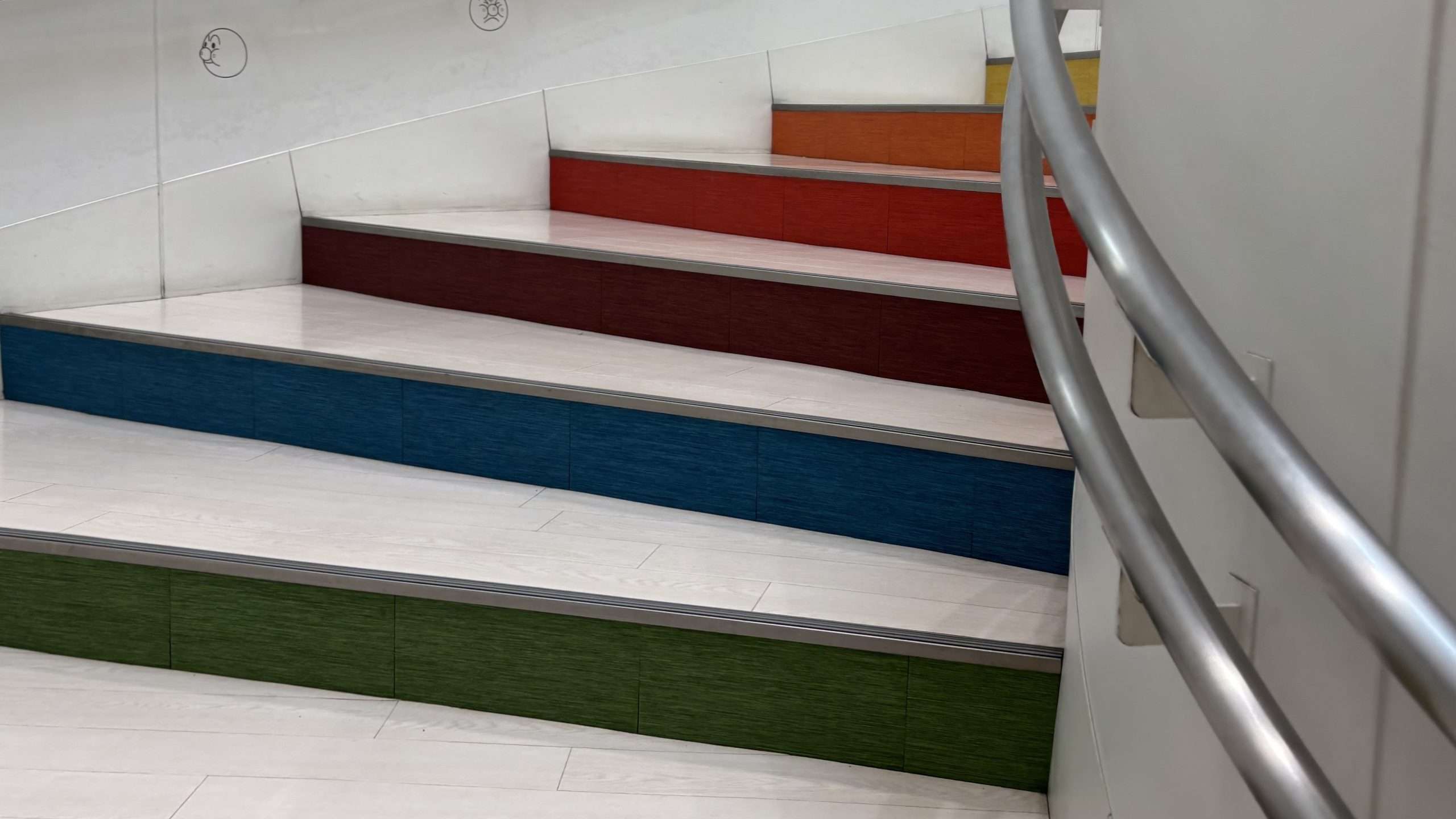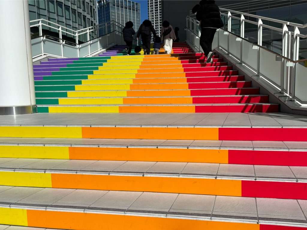 2, 3階エリアへの入り口は1階正面入り口の左側にある虹色の階段から行くことができます。