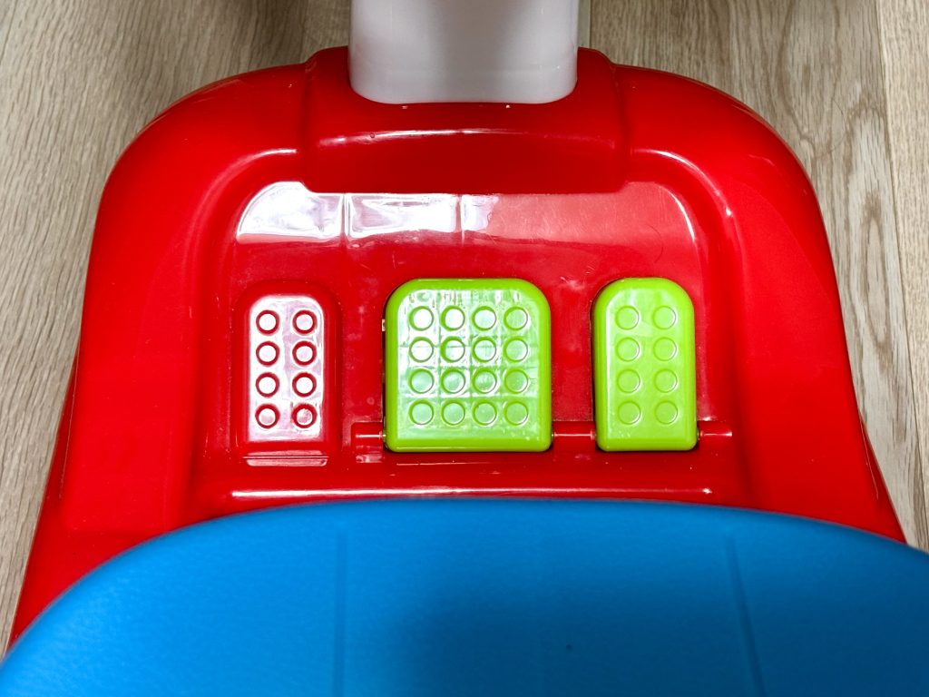 足元にはアクセルとブレーキが付いています!アクセルとブレーキはシフトレバーをドライブに入れないと音が鳴らないようになっています。