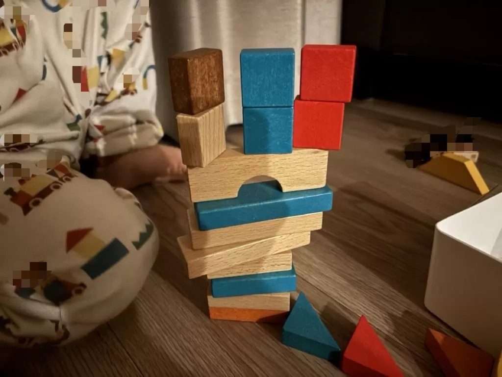 また、筆者はあまり見たことがありませんが、小さ過ぎる積み木は誤飲のリスクが出てきます。